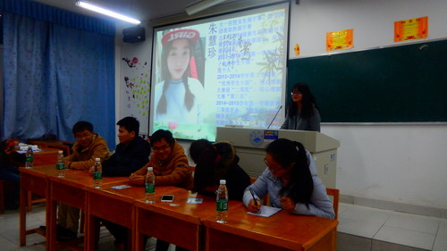 在404教室,黄生阳、刘其珍、谢利兵、朱慧珍、黄文彪五位学长学姐们以ppt的形式展示了他们在大学期间的学习、工作、生活和所取得的成绩,重点介绍了《数学分析》、《高等代数》的学习方法,强调多彩的大学生活,就是要找到自己的目标,做自己喜欢的事,引起了学弟学妹们的共鸣,提醒大一同学们应多读书、多思考,学会平衡学习和工作的关系,鼓励大家考研。互动环节,学长学姐们认真、耐心地解答同学们提出了问题和疑惑。