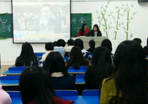 此次团日活动内容精彩纷呈,形式新颖丰富。有的班级通过ppt播放两会视频,让同学们感受现场氛围,并深刻地了解到作为新时代的大学生不仅要“一心读好圣贤书”,还要“两耳常闻窗外事”,多关心国家时事,真正成为社会主义的接班人和建设者;有的班级以击鼓传花的形式抽取卡片,通过回答与两会相关的问题,让同学们领悟会议的主要精神,助推社会主义核心价值观入脑入心;有的班级则以班委总结上学期工作以及阐述本学期工作计划的形式彰显两会精神,让同学们从关心身边小事做起,以严谨认真的态度和持之以恒的决心将两会精神中的社会主义核心价值观真正贯彻落实到学习生活中。