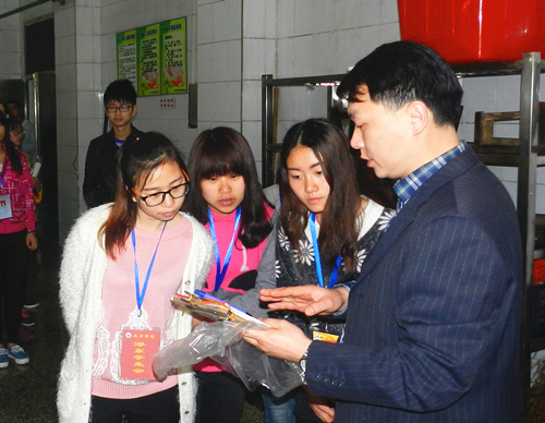 进入食堂,浔东餐饮服务中心负责人戴涛代表食堂全体工作人员欢迎大家的来访。戴涛管理员向同学们介绍了食堂概况,告诉同学们平常食用的每一道菜品都按照餐饮行业操作规范来制作并且都有留样检测,大家可以放心在食堂就餐。食堂还推出信息化交流举措,同学们在用餐过程中有任何疑问都可以通过微信扫码与管理员进行沟通与交流。参观过程中,同学们表示上个学期学校召开的学生意见建议征询会上一些关于食堂就餐方面的问题已大多得到了解决,回去以后还会将在食堂操作间里的所见告诉身边的同学。
