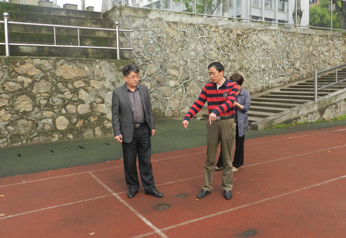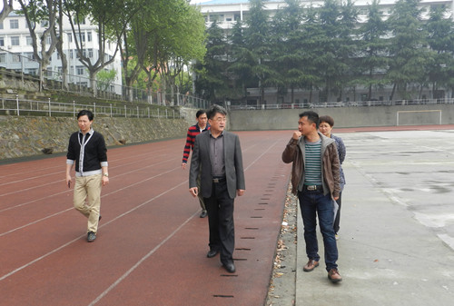 4月12日上午,浔东校区管理办主任杨晓宁、副主任周学英、谈有俭以及相关科室负责人到浔东校区田径场现场察看施工进度。