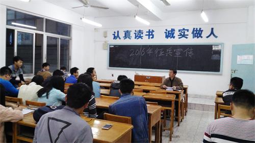 为普及国家征兵优惠政策,加强校园征兵宣传,4月10日晚,化环学院各班组织开展征兵宣传主题班会。