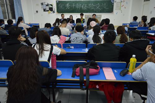 为提高团学联自我组织、自我服务、自我教育的水平,让骨干班学员们明确做好优秀干部的各项要求。4月13日晚, 经管学院大学生骨干培训班在义丰楼301教室开展了优秀学生干部经验交流会。团学联主席石常辉、副主席周世磊、第一期骨干班优秀学员黄金叶学姐和王鹏学长应邀与第二期骨干班学员分享心得。