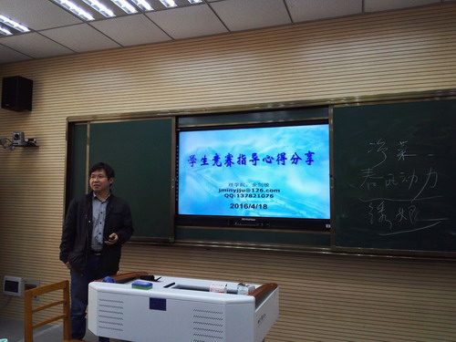 电商学院谭志合老师从五个方面介绍了“互联网+”比赛和“创青春”比赛:1、“互联网+”比赛和“创青春”比赛的比较;2、二级学院机制与比赛开展;3、教师个人在比赛中的作用;4、对“互联网+”比赛的一些认识;5、怎样才能出好的作品。理学院物理实验教学中心主任余剑敏老师分享了自己指导学生参加“互联网+”比赛和“创青春”比赛的心得体会:1、竞赛指导工作与自己的专业及教学研究要相结合;2、建设学生团队及指导教师团队;3、充分相信学生团队的创造能力;4、指导教师把握方向—项目来源及竞赛精神;5、自己指导参加第一届“互联网+”大学生创新创业大赛的体会。