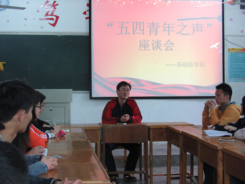 为了纪念“五四”青年节,充分展现青年们的积极向上的精神,4月26和27日上午,基础医学院分别组织各班学生代表、学生会学生骨干于思贤楼六楼召开两次“五四青年之声”座谈会,会议由基础医学院团委书记淦明南主持。