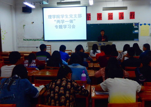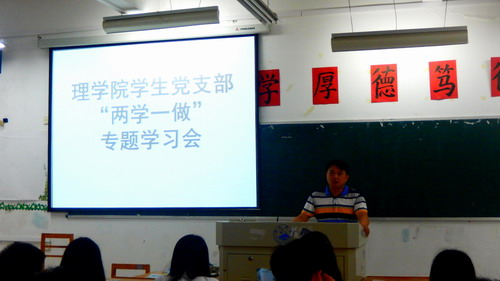 为加强学生党员对“两学一做”活动的理解并落实到具体行动中,理学院学生党支部于5月22日晚在文友楼317开展“两学一做”专题学习会。理学院党委书记邹国辉受邀授课,学生党支部全体党员、部分入党积极分子参加了学习活动,活动由学生党支部书记周梓哲主持。