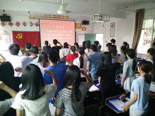 活动一开始,全体党员面对鲜艳的党旗,举起右拳,庄严宣誓,声音铿锵有力、精神饱满激扬。洪亮的誓词宣读声中,使每一位党员不忘初心,坚定入党的理想和信念。