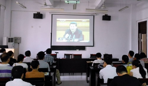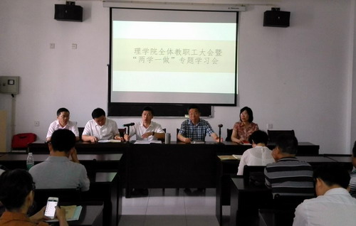 6月30日上午,理学院全院教师大会暨“两学一做”专题学习会在文友楼312举行,邹国辉书记主持会议,学院党政领导班子成员、全体教师出席大会。