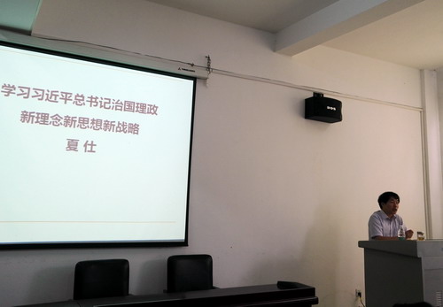 7月10日下午,马克思主义学院夏仕教授给全体学员作了题为《学习习近平总书记治国理政新理念新思想新战略》的专题讲座,讲座由政法学院党委书记高翔主持。夏教授分别从总书记是怎么炼成的?把握习近平总书记治国理政新理念新思想新战略的重大意义及其逻辑体系三个方面向培训班成员详细阐述了习近平总书记治国理政的新理念新思想新战略,在讲座中并融入了习近平总书记在建党95周年“七一”重要讲话精神内容。夏教授的讲座内容独到深刻,分析透切,资料翔实语言风趣幽默,给培训班学员奉献了一道丰盛的精神大餐。