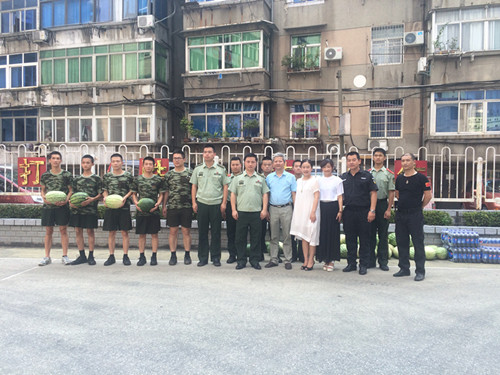 7月28日下午,在建军89周年即将到来之际,临床医学院/附属医院党委张南华书记、欧阳庆雯副院长带队,工会、保卫科等部门负责人一行带着西瓜和饮料来到浔阳区消防大队慰问消防官兵,并为他们送上了节日的祝福。