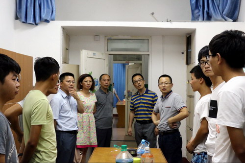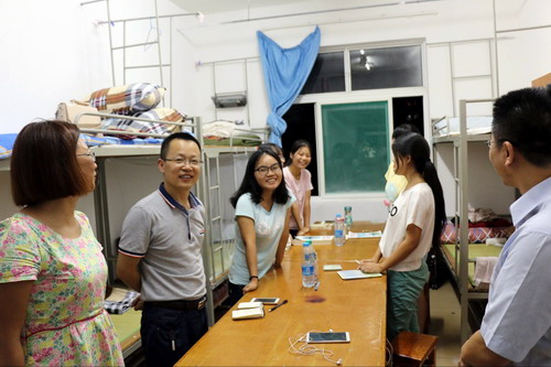 为了进一步做好新生入学教育工作,使他们更快的适应大学生活,9月5日晚,学院院长李松志,党委书记黄伟,副院长孙冬英、赵追、张辉,团委、学生科以及各年级辅导员老师一行人来到学生宿舍,亲切慰问2016级新生。