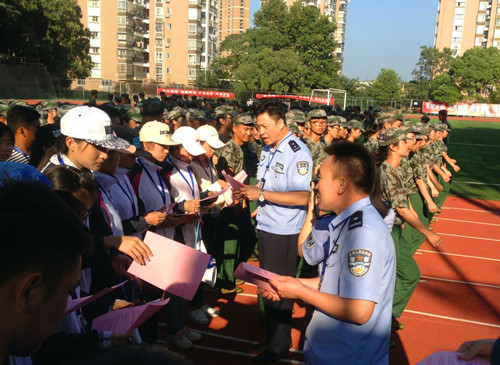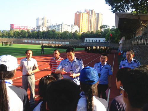 活动中,三里街派出所所长熊云生在田径场亲自为全体新生助理班主任讲述了电信诈骗的典型手段,提醒广大同学,特别是大一新生要加强自我防范意识,涉及个人财产流通的交易,一定要谨慎。同时在防盗、防范人身侵害,注意人身财产安全方面也向大家做出了讲解。随后,熊所长携民警将《浔阳公安分局致高校大学生的一封信》发到了在场全体新生手中。