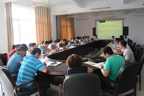 9月19日下午,机材学院在机械楼四楼会议室召开了“两学一做”党委中心组(扩大)学习会,学院领导班子成员、各支部书记以及各科室负责人参加了学习,会议由党委书记陈胜才主持。