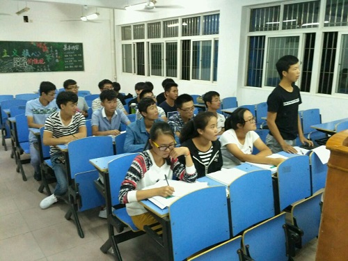 9月22日晚,机材学院于竞知楼大一各班晚点名教室开展了以“弘扬社会主义核心价值观,争做六有大学生”为主题的团日活动。各班级团支书主持本次活动,全体大一新生积极参与。