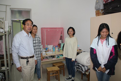为消除安全隐患,确保国庆假期宿舍安全, 9月30日上午,政法学院党委书记高翔和全体学生口老师来到学生宿舍,进行宿舍安全排查。