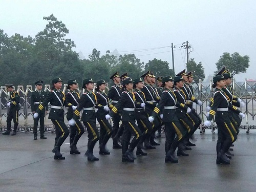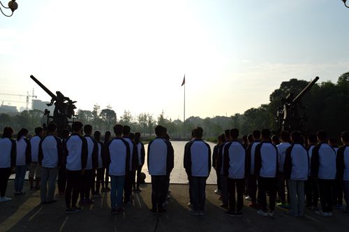 清晨当太阳还未从东方升起,大一新生列队以整齐的步伐向西大门前进。同学们个个精神饱满步伐矫健,展现出了当大学生蓬勃向上的精神面貌。随着一声令下,国旗班同学踏着整齐的步伐,托举着国旗向前行进。他们来到旗杆下,伴随着中华人民共和国国歌,鲜艳的国旗在国歌声中徐徐上升,同学们行注目礼,场内庄严肃穆,鲜艳的国旗随风飘扬。最后,升旗仪式完毕,同学们有序地退场。