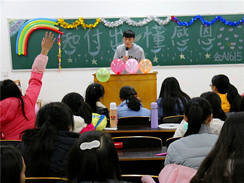 11月23日晚,会计学院团委组织部于立信楼各教室组织开展了以“知付出,懂感恩”为主题的团日活动,大一各班积极参与。