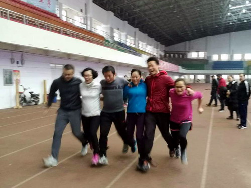 本次趣味运动会结合体育教学业务,共设置了一分钟跑篮、圈内颠足球、筷子夹乒乓球等三个个人项目,以及心心相印、蛟龙出海、集体跳绳等三个集体项目,尽管天气寒冷,但教职工们依然兴致盎然。全院教职工积极参与、密切配合,活动开展的如火如荼,热闹而激烈。每个项目竞争的都非常激烈,现场呐喊声和欢声笑语此起彼伏。