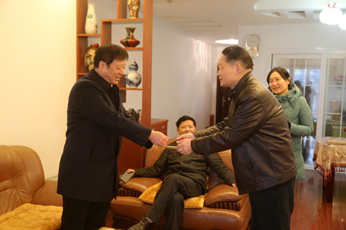 春节即将来临,元月17日,临床医学院/附属医院院长张志平、党委书记张南华带领相关职能部门负责人,看望慰问了临床医学院/附属医院离休老同志和知名中医老专家,代表全院教职员工向他们致以新春的问候与祝福,并送去春节慰问金。