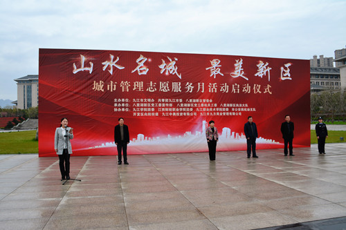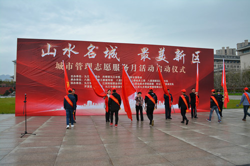 为扎实推进全市“打违治乱”整治工作,以建设文明、有序、美丽的八里湖新区,3月28日上午,九江市文明办、共青团九江市委、八里湖新区管委会于八里湖市民广场联合主办了“山水名城,最美新区”活动的启动仪式。出席本次活动的团队包括了八里湖新区党工委宣传部、党工委机关工委、八里湖新区执法大队、九江学院团委以及各界社会团体。