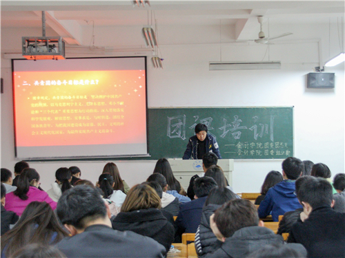 为深入学习习近平总书记系列讲话精神,全面推进从严治团及共青团改革,3月28日晚,会计学院团委团总支、组织部于立信楼604室联合开展了团课培训活动,会计学院团委学生副书记、团总支、组织部相关学生干部、大一各班团支书以及组织委员参加了本次培训活动。
