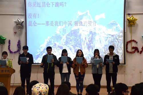 3月29日下午,同学们早早地来到文友楼三楼报告厅进行紧密地排练,并对会场进行了精心地布置。当男女主持人上场宣布晚会的开始,三位女生带来的一首《勇气》揭开了晚会的序幕。接下来是一首古风古韵的《凉凉》,青黄古风裙在舞台上翩翩起舞,深情对唱引人入境。而四组的集体合唱《同桌的你》温馨而又浪漫,整齐的球服带着亮丽青春的色彩。别样的南北方«新闻联播»给人带来全新的感受,混搭的«江南饮酒醉»更是把全场气氛推至了高潮,激情澎湃的朗诵«中国人,不跪的人»激起了观众的强烈爱国之情。小品«小明说事»以浓浓的东北腔令人回忆起白云黑土的幽默经典。接下来,骨干班全体带来的舞蹈串烧以及歌曲串烧其中穿插着浪漫的歌剧«罗密欧与朱丽叶»。压轴节目«不说再见»完整地再现了骨干班这些天的点点滴滴,纸飞机飞向舞台,班长上台致辞为本次晚会画上圆满的句号。