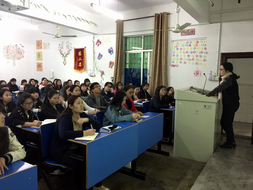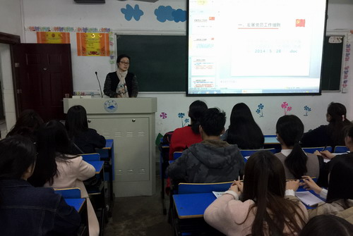 护理学院学生党支部充分发挥教育管理党员的主体作用,有效地运用“三会一课”抓好“两学一做”学习教育。4月12日晚,全体党员、预备党员及入党积极分子聆听了一堂关于“党员发展工作程序”的党课,由护理学院学生党支部书记范玲玲老师主讲。