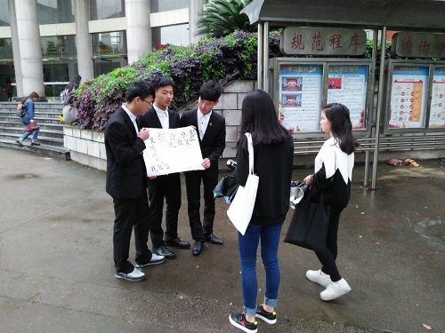 早上6:50,青马培训班的同学们按照班级分组,分别在不同的教学楼前开展宣传活动。“三个好习惯”即不带早餐进教室、不在上课玩手机,以及背书包上学。青马培训班的同学们拿出了自己精心制作的宣传海报,热情的向过往的同学们讲解着“三个好习惯”的内涵,并结合实际生活,突出指明了“三个好习惯”对大学生活的重要意义。由于此次活动积极有益,青马培训班的同学们热情耐心,越来越多的同学开始聚集在青马学员的周边,主动了解“三个好习惯”,并表示将用行动来践行这“三个好习惯”。