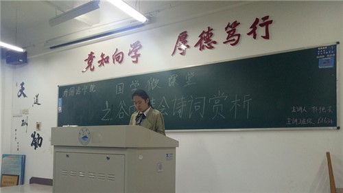 谷雨诗会虽早已落下帷幕,但却留下了篇篇佳作。为了让同学们对谷雨诗会中优秀的诗作有更深刻的理解,外国语学院三立国学社于5月11日晚组织大一年级在各班晚点名教室举行了以“赏析谷雨诗会原创诗歌”为主题的国学微课堂活动。