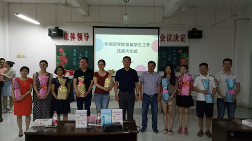 为进一步提升学生和班主任、辅导员的工作水平,努力打造职业化的学生工作队伍,5月30日晚,外国语学院在香远楼315会议室举办首届学生工作技能大比武活动,外国语学院党委书记杨杰、副书记彭晓出席了此次活动,学生科、团委书记负责同志及全体辅导员、班主任参加了此次活动,活动由团委书记江山老师主持。