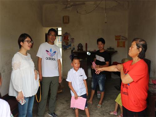 上午,宣讲团一行人在丁书记和郭老师的带领下,由三位小朋友带路,分别来到其家里进行家访。每到一名孩子的家中,宣讲团都受到家长们的热情招待,虽然家里没有舒适的沙发,没有精美的装潢,有的只是简单的木制家具,但是很干净、整洁又朴素,给人一种温馨感。丁书记和郭老师亲切询问爷爷奶奶们家里的情况后,给孩子们送去了新书包和笔记本铅笔等文具。在一名小男孩家中,志愿者们都为那满墙的奖状而啧啧赞叹,小男孩读五年级,年年三好学生,优秀班干部,他的奶奶还特意从房间里拿出小男孩今年在学校六一文艺汇演中表演相声而获得的奖状给大家看,脸上洋溢着对小孙子的欣慰和骄傲。白沙小学的大多数学生都是留守儿童,和爷爷奶奶一起生活,他们的父母为了提供给他们更好的生活条件,不得不离开他们到外地务工。孩子们虽然没有父母的每日陪伴,但是他们依旧爱笑、爱玩。或许在他们内心深处,满是对父母的思念,但为了回报父母,他们仍然坚强地努力学习着,微笑着。