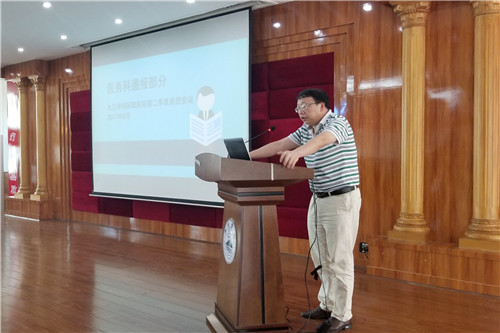 质控科李丽科长汇报了九江市卫计委大型医院巡查反馈意见中质控相关内容,对整改情况、近期优秀病历评比、病历价值基金评定中发现的普遍问题进行了反馈。医务科肖雪副科长分享了参加北京临床路径培训班学习心得,并对近期临床医学院/附属医院临床路径工作情况进行了通报。