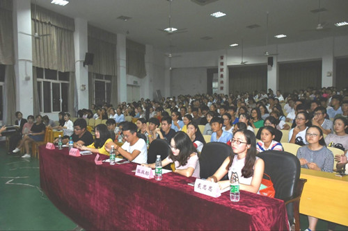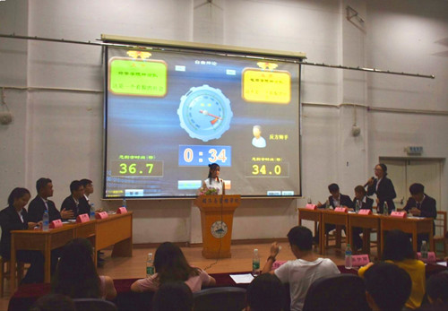 9月25日晚,由经管学院与电商学院学习部联合主办的辩论赛表演赛于文友楼三楼报告厅举行,电子学院、信息学院、土建学院的新生来此观看比赛。