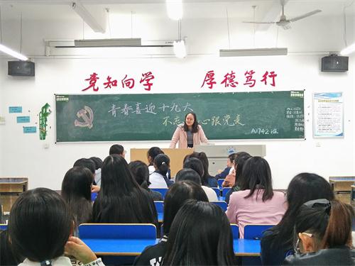 活动中,各班同学以丰富多彩的活动形式表达了自己对十九大的独特见解。A1713班的活动在斗志昂扬的国歌声中拉开了序幕。随后组织观看了《我是党代表》的视频,让同学们对于党员所肩负的责任与义务有了进一步的认识。A1743班和A1711班的同学则通过小游戏的形式来加深同学们对我国部分现有政策的印象与理解。活动最后,同学们一致表示,要不忘初心跟党走,撸起袖子加油干,努力学习专业知识,在这美好时代里绽放青春的光彩和活力,早日见证中华民族伟大复兴“中国梦”的实现!