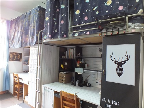 在“书香寝室”建设中最重要的理念就是环保,坚持用环保的材料、合理的价格和最好的创意去装扮寝室,同学们纷纷围绕活动主题、发挥想象力对寝室进行了精心装扮,除了温馨的照片墙,各具特色的床帘,火红的剪纸装饰等,“空白阁”,“公主窝”,“墨林轩”等个性十足的寝室名称也是活动中的一大亮点。在评选期间,评选人员分别从寝室卫生,装扮主题,设计理念、书香气息等方面进行了评比打分。