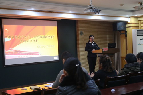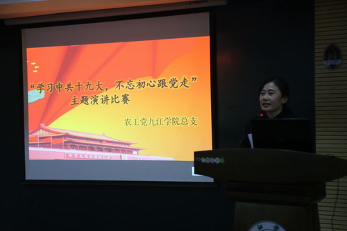 为学习宣传贯彻好中共十九大精神,12月1日下午,农工党九江学院总支举行“学习中共十九大,不忘初心跟党走”主题演讲比赛活动。农工党九江市委会副主委、九江学院总支主委、九江学院附属医院副院长欧阳庆雯出席活动并讲话。活动由总支副主委王巧云教授主持。总支班子其他成员、各支部负责人与部分党员代表20余人参加了这次活动。