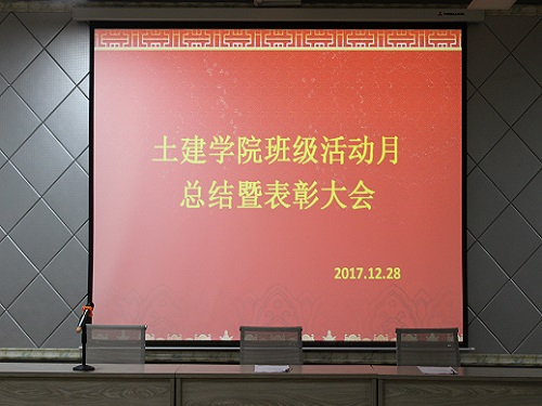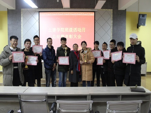 2017年12月28日下午,土建学院班级管理委员会在望庐楼101举行了学院班级活动月总结暨表彰大会,到会老师有指导老师江英、年级辅导员老师刘少武、会议由班级管理委员会主席沈东主持,众多学生干部参加。