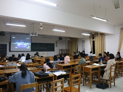 晚上七点,各班代表走上讲台,向同学们解释何谓消费者权益,在权益受到侵犯时,如何去维护我们正当的利益等知识,并且与同学们进行互动,共同探讨消费者维权方式。同学们积极配合,认真听取。