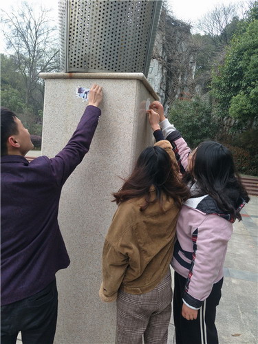 活动中,同学们分为几个小队,清理公园内墙、柱子存在的一些小广告,清扫地上垃圾。他们以实际行动,引导游人、路人从我做起,从小事做起,为美化南山公园奉献出一份力量。