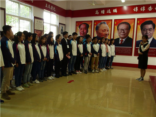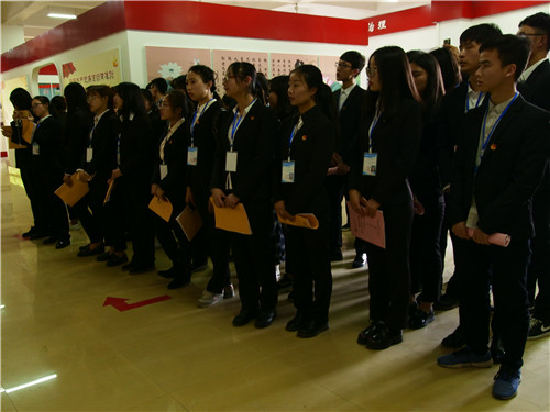在讲解员的带领下,大骨班学员和入党积极分子先后参观了“正衣冠”、“警钟”、“决策篇”、“形势篇”、“宣誓区”、“教育腐败惩处区”以及“艺术作品和学校景观”等区域。在参观过程中,同学们积极认真地听取讲解员的讲解,并进行了相关的讨论和深思。在“宣誓区”,同学们在讲解员的带领下,斗志昂扬的宣誓着他们对党的忠诚和热爱。
