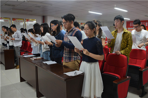 活动负责人为同学们解读了红色家书的内涵,并播放了一部关于红色家书视频,讲述的是共产党人陈觉与他同为革命者的妻子赵云霄的故事,为同学们展现了烽火岁月中可歌可泣的亲情。接着,由党员代表上台诵读红色家书,他们用诚挚的语言刻画出一幅幅革命先辈的画面,一词一句间无不传递出共产党人艰苦奋斗、不屈不挠的优秀精神。随后,全体人员一同起立朗读裘古怀烈士遗言,将自己的情感代入到了革命先人的情境之中,真切感受到了作为一个共产党员的光荣使命。