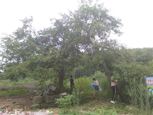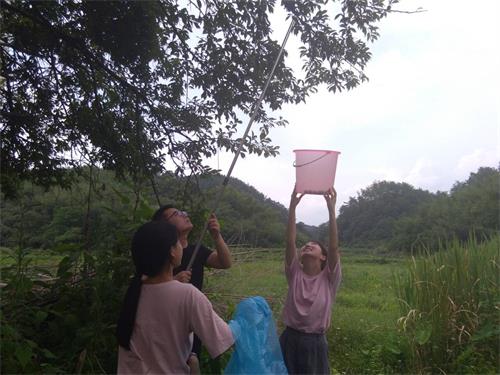 上午活动结束,中午江山老师与队员们一同动手做午餐。一部分人帮村民阿姨一起摘李子,大家一起忙的不亦乐乎。
