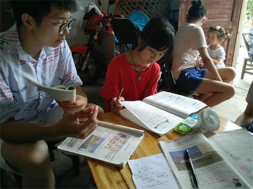 此次活动以志愿者晨跑开始,紧接着志愿者们分为两批开展活动。一批志愿者前往小朋友家开展一对一的家教活动。面对队员们,小朋友们十分热情且积极配合教学;另一批志愿者开展参观考察活动,参观了村里的古老建筑和新建的楼房,切身感受到了城乡历史性的新变化。