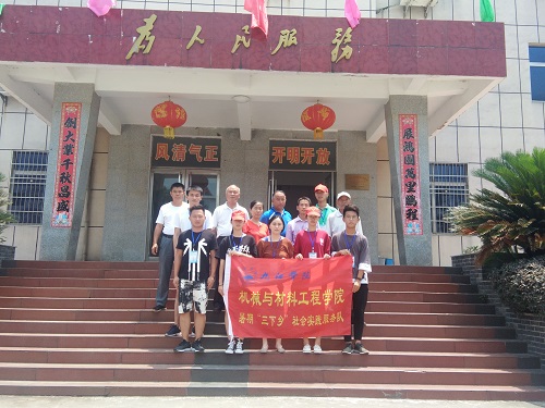 响应国家倡导大学生暑期开展“三下乡”社会实践活动的号召,日前,由机械与材料工程学院师生组成的服务队走进了九江市湖口县相关乡镇,开展了为期五天、主题为“青春大学习、奋斗新时代”的社会实践,积极参与到关注民生、扶老助学、恤病助医等工作中,并针对“改革开放40年城乡变化”和“城乡居民幸福指数”两个主题做了较为深入的社会调查。
