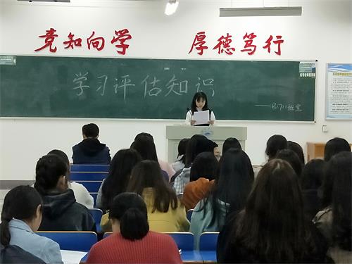 学习活动中,团支书宣读《传承九院精神,争做迎评先锋――外国语学院致广大同学们的倡议书》,向同学们发起倡议:一要提高迎评认识,增强行动自觉,牢固树立主人翁意识;二要强化纪律观念,保持良好秩序;三要创建优良学风,打造优质课堂;四要传承九院文化,促进校园文明;五要增强学校认同,争做迎评先锋。团支书为同学们讲解了九江学院《本科教学工作审核评估宣传手册》的应知应会内容。