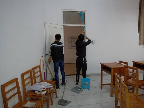 此次卫生清理系列活动以打扫文友楼为主,对教室、走廊进行全面的卫生清理。10月24日下午,文传学院教督部组织开展卫生大检查,院党委书记汤红莲、学生科科长林岩到场检查并进行卫生清理指导,17届各班班长及生活委员参加活动。10月25日中午,文传学院组织学生干部开展了大扫除活动,17届众干事分工合作,积极参与。10月26日中午,文传学院党员预备党员和入党积极分子在文友楼进行了卫生义务劳动。充分展现了其不怕脏、不怕累,敢于冲在前面、敢于抢挑重担的精神风貌。10月27日上午,文传学院组织受助学生开展文友楼卫生清理志愿服务活动。
