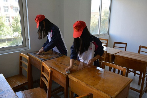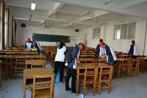 活动中,志愿者们先用水打湿桌面上的小广告,然后用铲子细心清理,小心翼翼,在保证清除小广告的同时,防止刮花课桌。随后,志愿者们将课桌抽屉里的垃圾倾倒出来与地上垃圾一并扫掉,保证了课桌内部及地面卫。并整理了讲台,擦拭干净黑板。经过近两个小时的努力。小广告不复存在,垃圾回归垃圾桶,桌椅整齐摆放,所有教室焕然一新。