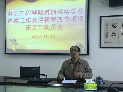 11月14下午,电子工程学院召开贯彻落实学校巡察工作及巡视整改专项工作动员会,会议由电子工程学院党委书记孙小明主持,全体教职工和部分学生代表参加了会议。