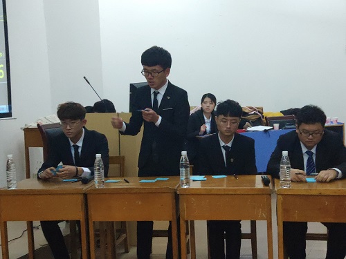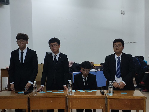12月7日晚,机材学院于竞知楼二阶教室进行“新生杯”辩论赛的决赛,辩手分正反两方,A1861班为正方,A1831班为反方,比赛由辩论队部分干部点评,部分同学到场观看。