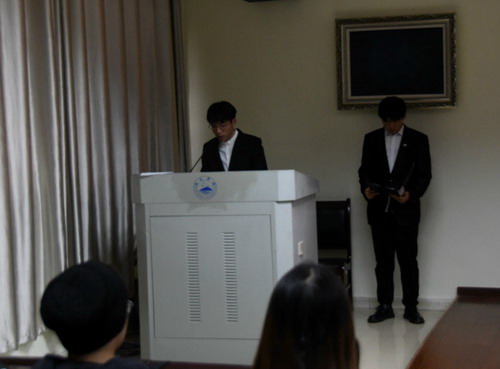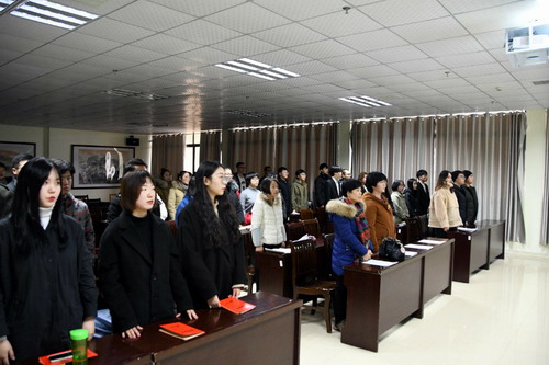沈杨首先对第一届理事会成员所做的贡献表示了感谢,对受表彰的同学表示祝贺。同时,他建议在以后的表彰中可以适当的扩大面,如增设表彰楼栋、楼层等等,对于授表彰的同学应该注明他的楼栋号和寝室号。对于新上任的理事会干部也提出了具体要求:一要摆正心态,主动工作;二要明确职责,积极工作;三要注意方法,确保安全;四要做好活动,营造氛围。并希望大家在今后的工作中砥砺前行,再创辉煌。