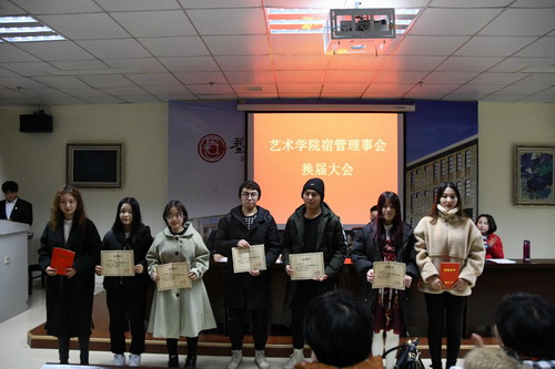 为加强艺术学院宿舍文化建设,规范学生宿舍管理工作,提高学生在宿舍区的“自我教育、自我管理、自我服务”的能力,艺术学院于12月26日在艺术楼东102举行了第二届宿舍理事会的换届大会。学院党委副书记沈杨、团委学生科负责人、辅导员老师和理事会全体成员参加了此次活动。
